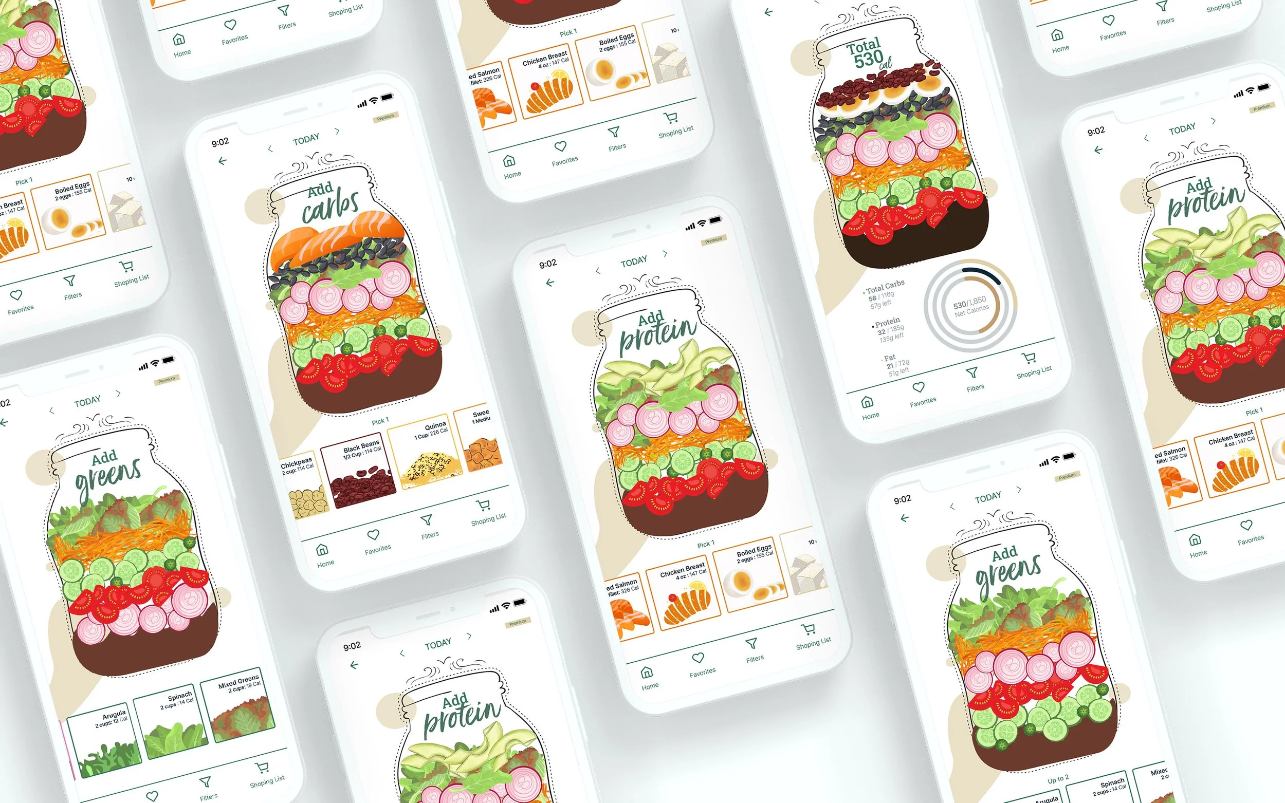 That's where Salad in a Jar came in — an ingenious app designed to simplify healthy lunches. Recognizing the effectiveness of meal prepping for tracking nutrition intake, I incorporated a feature into the app allowing users to view the nutritional facts of each ingredient as they add it to the jar. Moreover, I devised a method for layering the ingredients within the jars, starting with wet ingredients like dressing or vegetables to prevent wilting or sogginess.